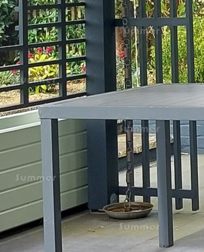 EXTRA NOTE:- THE CUSTOMER ADDED THE DECORATIVE WALL SCREENS, THE PLANTER AND THE RAIN CHAIN.