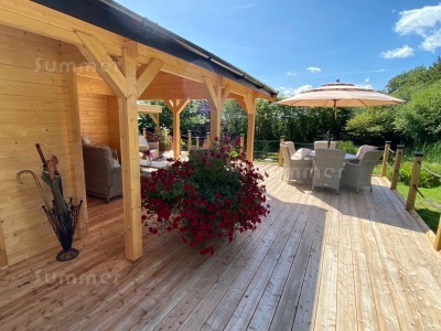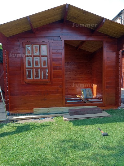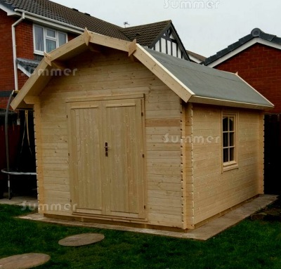 When we received our initial phone call after ordering, the nice man I spoke to did say that you rarely receive updates or photos of completed cabin by customers so we received our order from you a couple of weeks ago and thought you might like to see how 2 disabled OAPs (in our 60's) have got on so far with our Apex 28mm Log Cabin 881 (keep in mind this is Scotland and we do not get the weather very often here to start building outdoors).